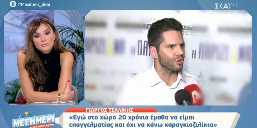 Λίγο νωρίτερα όμως η στάση της προς τον τραγουδιστή έδειξε άλλα. Ο Γιώργος Τσαλίκης την είδε στο χώρο και την πλησίασε για να της μιλήσει. Η κουβέντα τους δεν κράτησε πάνω από 2-3 φράσεις και φάνηκε να κόβεται απότομα. Ο Τσαλίκης περιέγραψε τι συνέβη μετά και έδειξε φανερά ενοχλημένος.