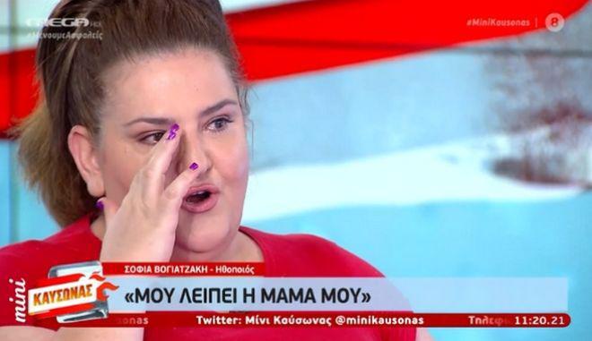 Συγκεκριμένα, όταν η Αθηναΐς Νέγκα ρώτησε την ηθοποιό «τί της λείπει αυτό το καλοκαίρι;», η Σοφία Βογιατζάκη συγκινημένη εξομολογήθηκε τις δύσκολες στιγμές που περνά μετά την απώλεια της μητέρας της.