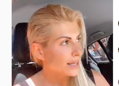 Ισχυρίστηκε πως όταν την πλησίασαν άνθρωποι της παραγωγής και μπήκαν στο αυτοκίνητό της και «έπαθα αμόκ, ζήταγα απεγνωσμένα το κινητό μου και δεν μου το έδιναν, μας τα παίρνει η παραγωγή. Το αυτοκίνητό μου είναι ηλεκτρικό. Αποφάσισα να βάλω μπρος και να φύγω. Κάποιος από την παραγωγή μου πήρε τα κλειδιά και βγήκα Βείκου. Το αυτοκίνητο δεν άκουγε καμία εντολή και όπως έκανα αναστροφή έπεσε πάνω σε έναν ντελιβερά ο οποίος κατέβηκε και άρχιζε να με βρίζει και καλά έκανε. Του εξήγησα τι συνέβη και του είπα πως μου πήραν τα κλειδιά. Του έδωσα την ταυτότητά μου και πήγε να πάρει κλειδιά και κινητό και δεν μου τα έδωσαν. Γύρισε πίσω και τον ακολούθησε άνθρωπος από την παραγωγή και πήρε τηλέφωνο. Κλαίγοντας και ουρλιάζοντας μιλούσα στο τηλέφωνο. Πήγατε να με σκοτώσετε άθελά σας. Ζήτησα από τον παραγωγό τα κλειδιά και το κινητό και μου είπε μη μιλάς έτσι. Ο ντελιβεράς κατάλαβε τι έγινε και είπε στον άνθρωπο της παραγωγής ότι θα παίξουμε μπουνιές. Ο ντελιβεράς κάλεσε την αστυνομία και σε πέντε λεπτά έφεραν το κινητό και τα κλειδιά μου».