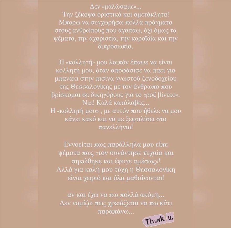 Συγκεκριμένα ανέφερε πως η φίλη της πήγε για μπάνιο σε πισίνα με τον άνθρωπο ο οποίος κατηγορείται για την διαρροή του ροζ βίντεο, το οποίο την ταλαιπωρεί εδώ και καιρό.