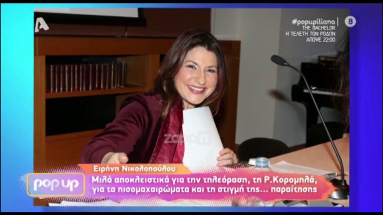«Η πρώτη πρωινή εκπομπή ήταν το 1988 με την… ομιλούσα. Τα πρωινάδικα τα ξεκίνησα εγώ με τν Άρη Σκιαδόπουλο και όχι η Ρούλα Κορομηλά. Η Ρούλα ξεκίνησε το πρωινό με τη μορφή που βλέπουμε σήμερα. Τότε πάθαινα φωτοεγκαύματα, γιατί δεν είχαμε συνηθίσει να βγαίνουμε στα φώτα ενός στούντιο τηλεόρασης. Και είχα πολύ σοβαρό πρόβλημα με τα μάτια μου. Το 1997 κάλυψα τον θάνατο της Νταϊάνα και όταν γύρισα δεν βρήκα τη θέση μου, δεν είδα το όνομά μου στα δελτία ειδήσεων», είπε η Ειρήνη Νικολοπούλου.
