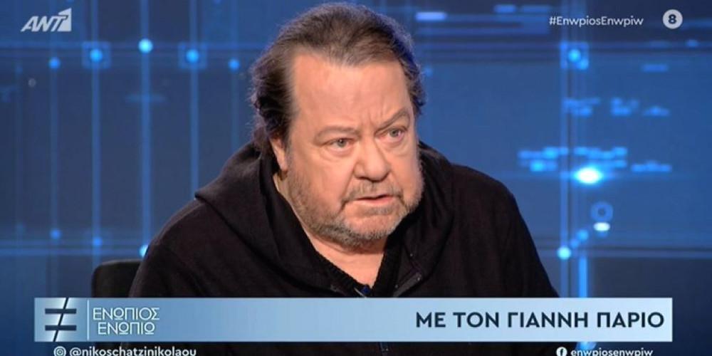 Αρχικά αναφέρθηκε στο επίθετο Πάριος, καθώς το πραγματικό του είναι Βαρθακούρης. «Νονοί του ονόματος ήταν πολλοί. Και ο Μάκης Μάτσας και εγώ και ο Γιώργος ο Κατσαρός», ανέφερε τονίζοντας ότι είχε πέσει στο τραπέζι και το «Παριανός».