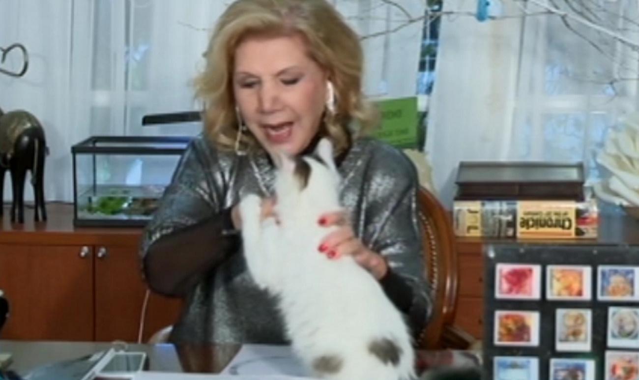Πάνω στο γραφείο της γνωστής αστρολόγου, η γάτα ήθελε τα δικά της. Η επανατοποθέτηση ενός περιοδικού, όμως, μάλλον την αναστάτωσε.