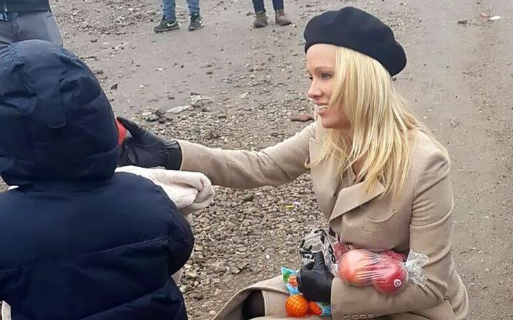 Η σταρ του σινεμά και της τηλεόρασης αφού πήγε σε ένα σούπερ μάρκετ της περιοχής και έκανε μερικές αγορές στη συνέχεια πήγε και μοίρασε τρόφιμα, βιβλία ζωγραφικής και σκεπάσματα στους μετανάστες του Linière à Grande-Synthe στη βόρεια Γαλλία.