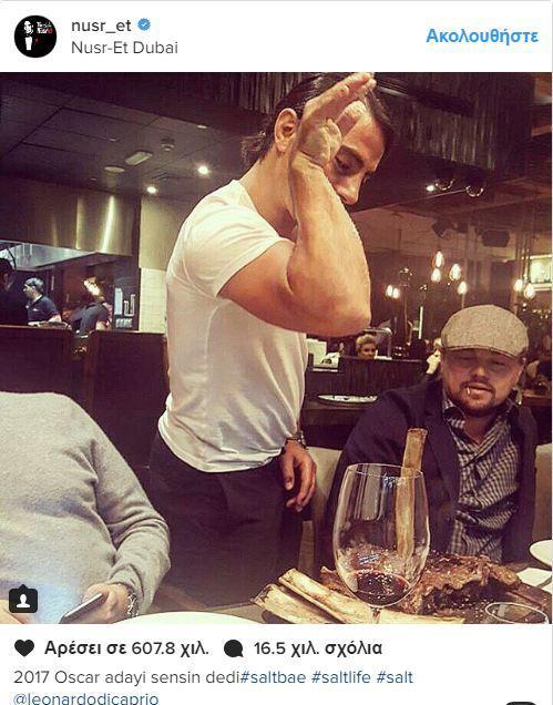 Ο πασίγνωστος, πλεόν, Τούρκος χασάπης και σεφ ανέβασε στον λογαριασμό του στο Instagram μία φωτογραφία στην οποία απαθανατίζεται ο ίδιος να αλατίζει με τον γνωστό του τρόπο σε εστιατόριο στο Ντουμπάι και δίπλα του ναα τον απολαμβάνει ο Λεονάρντο Ντι Κάπριο.