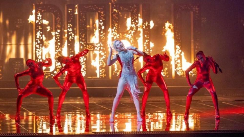 Με τους κατακόκκινους χορευτές της, σε κόκκινο σκηνικό και την υπέρλαμπρη δημιουργία της Σίλιας Κριθαριώτη ανέβηκε όγδοη στη σκηνή του Ahoy Arena.