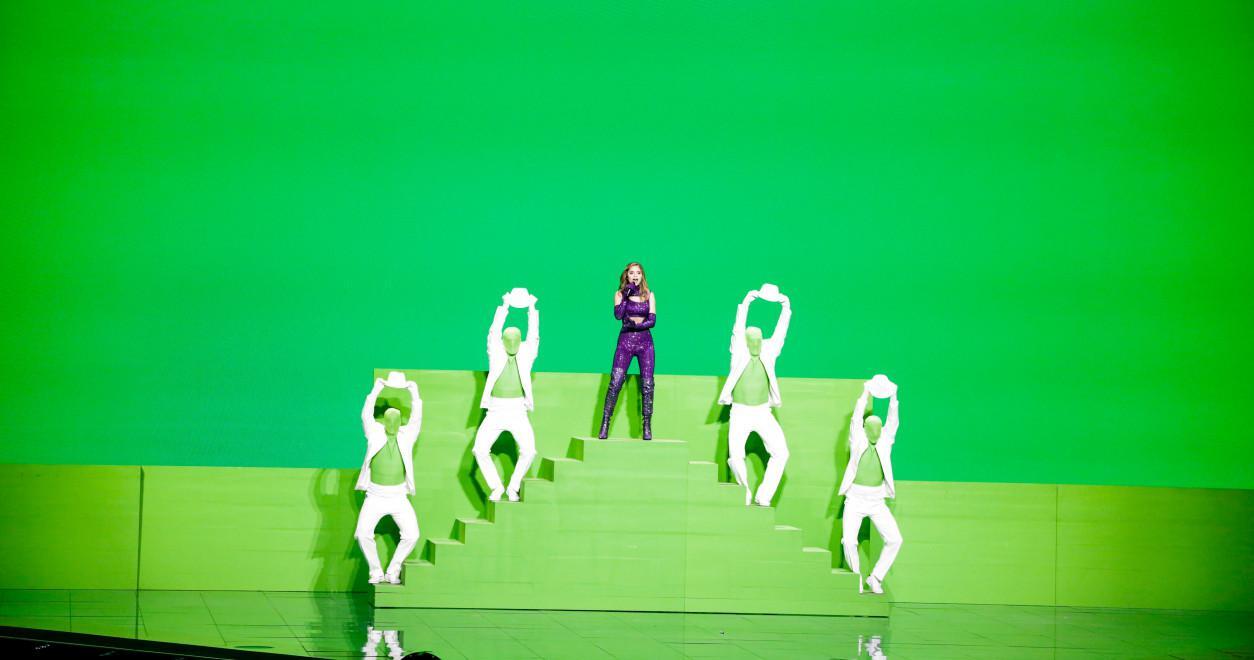 Λίγα λεπτά μετά τις 22.00, η δική μας Στεφανία Λυμπερακάκη ανέβηκε στο stage και τραγούδησε το «Last Dance», μία δημιουργία των Δημήτρη Κοντόπουλου, Arcade και Sharon Vaughn, με τη σκηνοθετική σφραγίδα του Φωκά Ευαγγελινού.