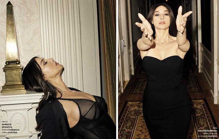Η Μπελούτσι φωτογραφήθηκε από τον Terry Richardson με μαύρα αποκαλυπτικά ρούχα ή μόνο με το σεντόνι της και βάζει φωτιά σε κάθε της πόζα.