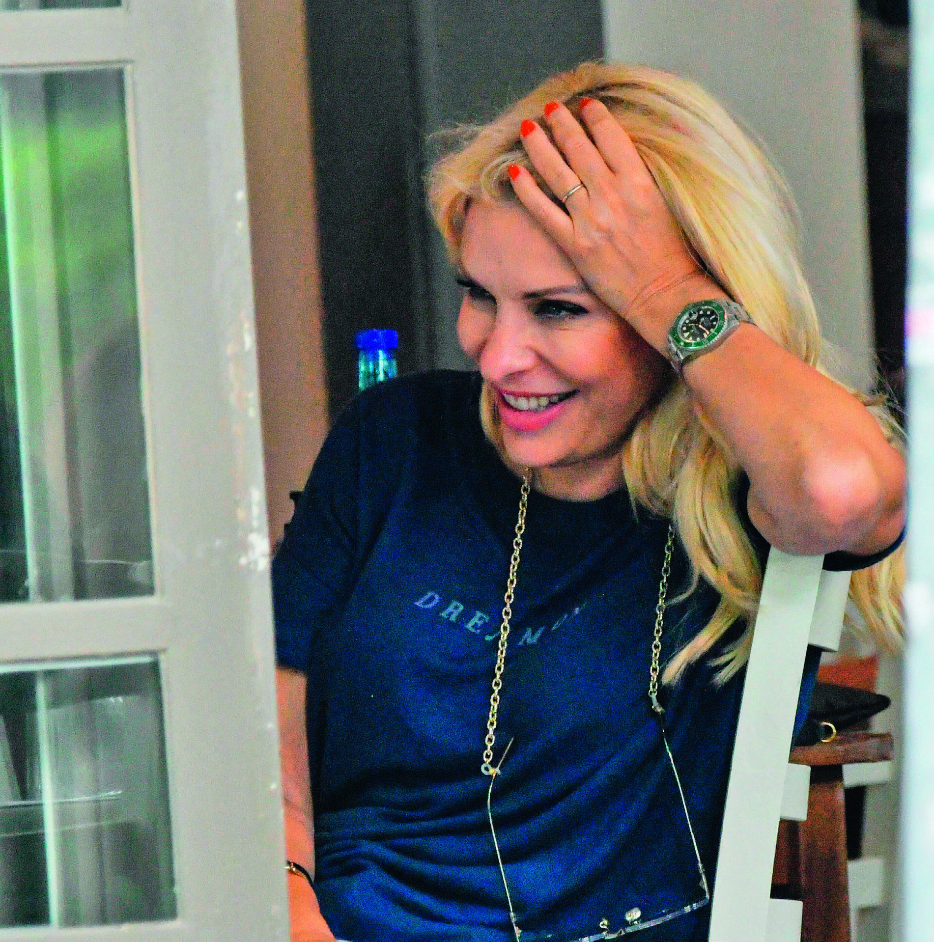 Την ευχάριστη ατμόσφαιρα διέκοπτε κάπου κάπου το τηλέφωνό της όταν χτυπούσε και ταυτόχρονα εκείνη τη στιγμή φαινόταν να αλλάζει και η χαλαρή της διάθεση.