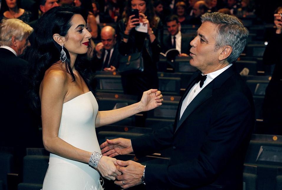 Όσο για τον Τζορτζ κοιτούσε στα μάτια την γεννημένη στη Βηρυτό δικηγόρο δείχνοντας ότι το ζευγάρι περνάει την πιο τέλεια περίοδο της ζωής του.