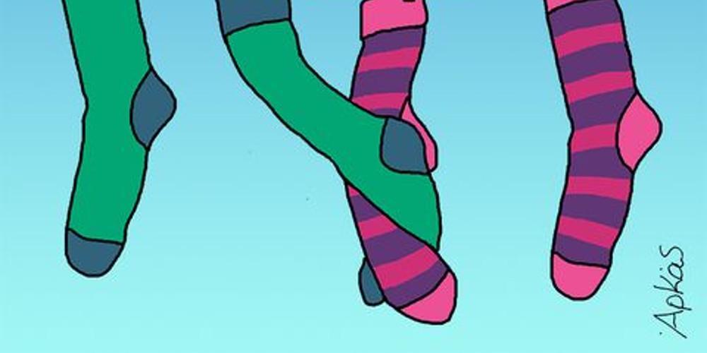 Στο σκίτσο είναι κρεμασμένα δύο ζευγάρια κάλτσες μόνο που οι δύο από αυτές έχουν έρθει πιο κοντα από όσο θα έπρεπε.