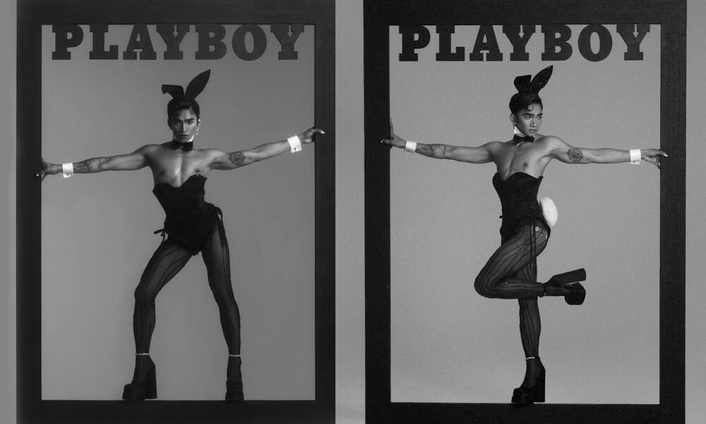 Ο 23χρονος influencer, εμφανίζεται στο digital εξώφυλλο σαν άλλο «κουνελάκι», φορώντας τον κλασικό μαύρο κορσέ, αυτιά και το παπιγιόν.