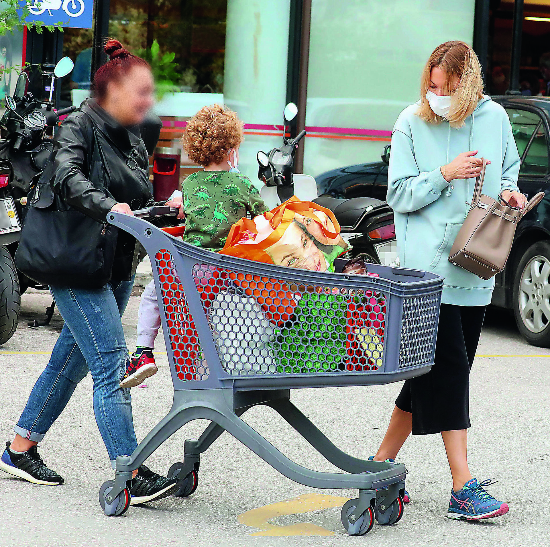 Ντυμένη casual και με φόρμα, εντελώς άβαφη και φορώντας πάνω απ’ όλα το λαμπερό χαμόγελό της, η Βίκυ Καγιά και τα παιδιά της λατρεύουν τη βόλτα στο σούπερ μάρκετ και, παρά το βαρύ επαγγελματικό της πρόγραμμα, εκείνη δεν δυσανασχετεί ποτέ.
