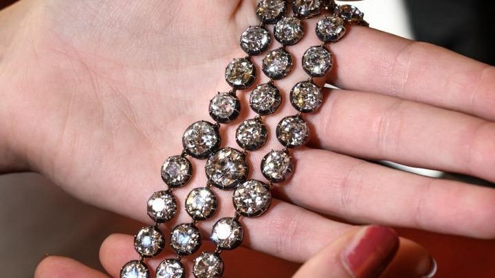 Τοποθετημένα σε μια μπλε βελούδινη θήκη που γράφει «βραχιόλια της βασίλισσας Μαρίας Αντουανέτας», τα διπλά βραχιόλια, τα οποία αποτελούνται από τρεις σειρές διαμαντιών, μετρούν συνολικά 112 διαμάντια.