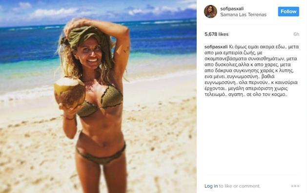 Έτσι, φωτογραφήθηκε στην παραλία με μαγιό και μια μεγάλη καρύδα στο χέρι μέσα από την οποίο απολάμβανε τον χυμό της, γράφοντας χαρακτηριστικά: