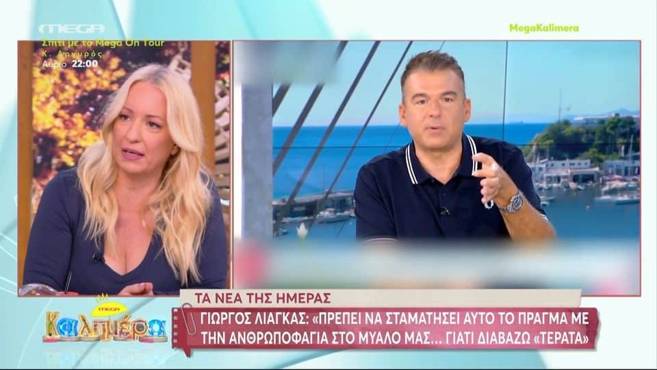Συγκεκριμένα, η δημοσιογράφος ανέφερε ότι: «Συνάντησα τον Γιώργο Λιάγκα και ήταν αρκετά φορτισμένος. Είναι πάρα πολύ στεναχωρημένος για πολλούς λόγους και ένας εξ αυτών είναι ότι του έχει χρεωθεί ότι είναι “γυναικοφάγος”, όπως μου είπε, ότι τρώει τις συμπαρουσιάστριές του. Μου εξέθεσε όλη την κατάσταση, ακριβώς πώς έχει γίνει και πώς έχουν φύγει οι κυρίες που ήταν στην εκπομπή, από δίπλα του.»