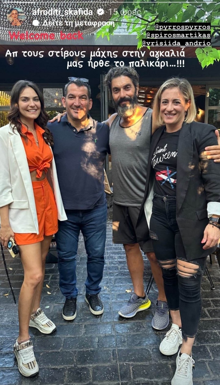 Στην συνέχεια, το ερωτευμένο ζευγάρι του Survivor πήγε για brunch στην Κηφισιά μαζί με την Αφροδίτη Σκαφίδα και τον Πύρρο Δήμα, αφού η αθλήτρια είχε αναπτύξει μέσα στο παιχνίδι πολύ καλές σχέσεις με εκείνον ενώ βγαίνοντας συνέχισε να κάνει παρέα και με τη Βρισηίδα.