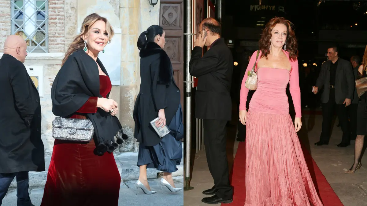 Η Αγάπη Πολίτη φόρεσε μία βελούδινη τουαλέτα σε βουργουνδί χρώμα την οποία συνδύασε με μαύρη πασμίνα και μαύρα πέδιλα ενώ ολοκλήρωσε το look της με ασημί τσάντα και σμαραγδένια μακριά σκουλαρίκια.