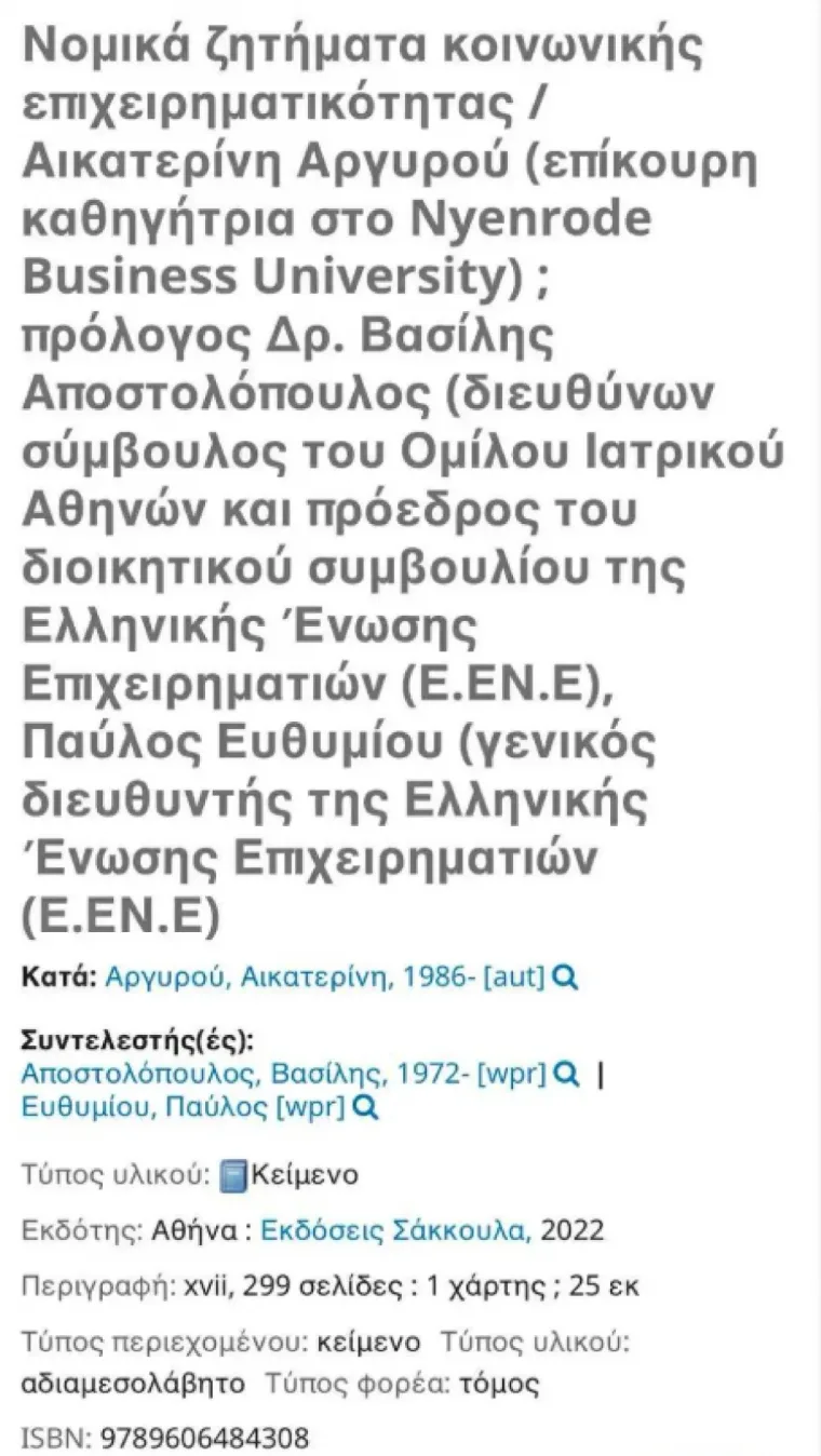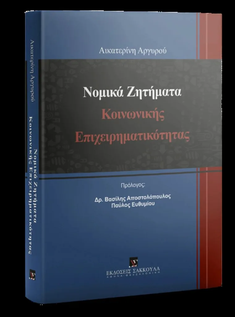 Η Κατερίνα Αργυρού, απόφοιτος Νομικής με σημαντικό ερευνητικό έργο, συγκεντρώνει στο νέο της βιβλίο τα συμπεράσματα μελετών που διεξήγαγε την περίοδο 2014–2021, προσφέροντας ουσιαστική συμβολή στην κατανόηση της κοινωνικής επιχειρηματικότητας από νομική και επιστημονική σκοπιά.