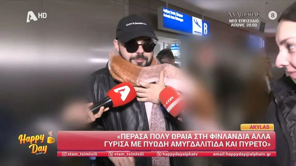 Η επιστροφή του καταγράφηκε σε ρεπορτάζ, που προβλήθηκε στην εκπομπή «Happy Day» την Τετάρτη 25 Μαρτίου. Σύμφωνα με το ρεπορτάζ, ο καλλιτέχνης εμφάνισε πυρετό και συμπτώματα που ανάγκασαν τους συνεργάτες του να ζητήσουν άμεση ιατρική φροντίδα. Οι δηλώσεις του έγιναν σύντομα και υπό αυστηρό χρονικό πλαίσιο, καθώς η υγεία του δεν επέτρεπε εκτενείς συνομιλίες.