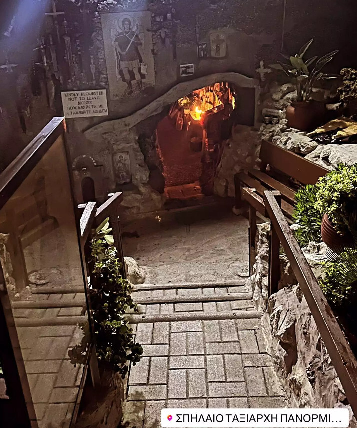 Τα ξημερώματα (σ.σ. πριν αποχωρήσει από τη Ρόδο) ανέβασε μία φωτογραφία με το προσκύνημα που είχε κάνει στο σπήλαιο του Ταξιάρχη Πανορμίτη.