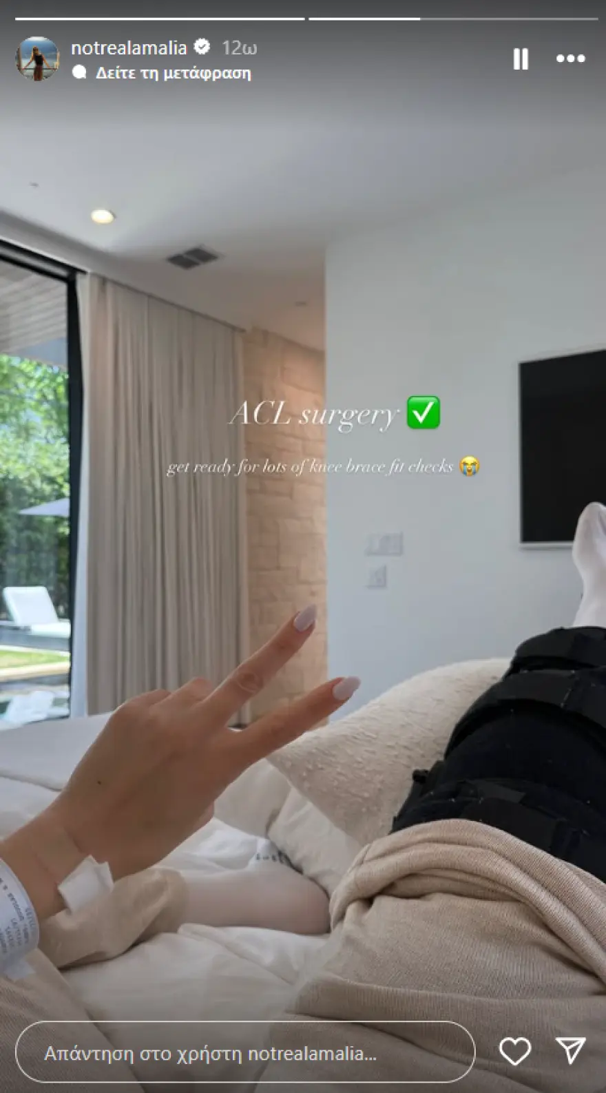 Η ίδια έγραψε στο Instagram ότι υποβλήθηκε σε χειρουργείο πρόσθιου χιαστού συνδέσμου στο γόνατο.