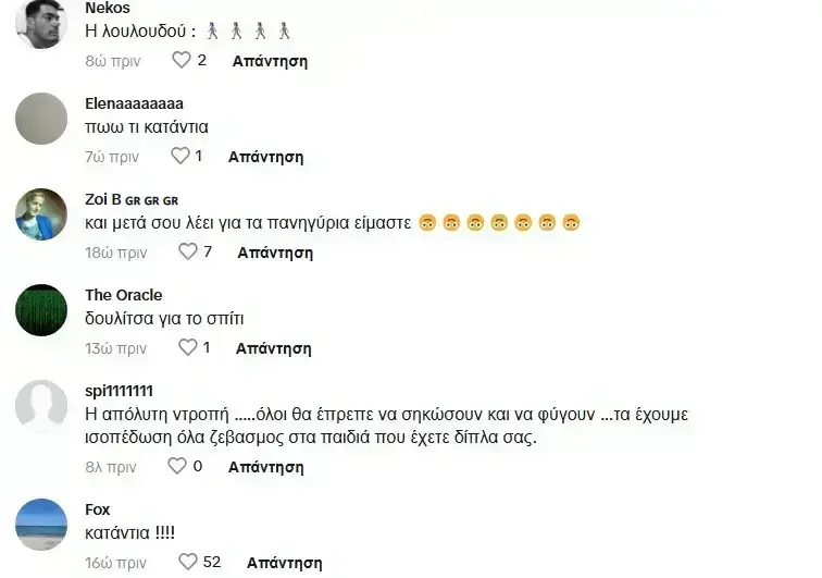 Συγκεκριμένα, γράφουν: «Τραγικό», «θα τρέχουμε στο πιο ψηλό βουνό μου φαίνεται για να βρούμε πλέον κανονικό πανηγύρι», «προσωπικά δεν έχω ξαναδεί τέτοιο σόου σε πανηγύρι».