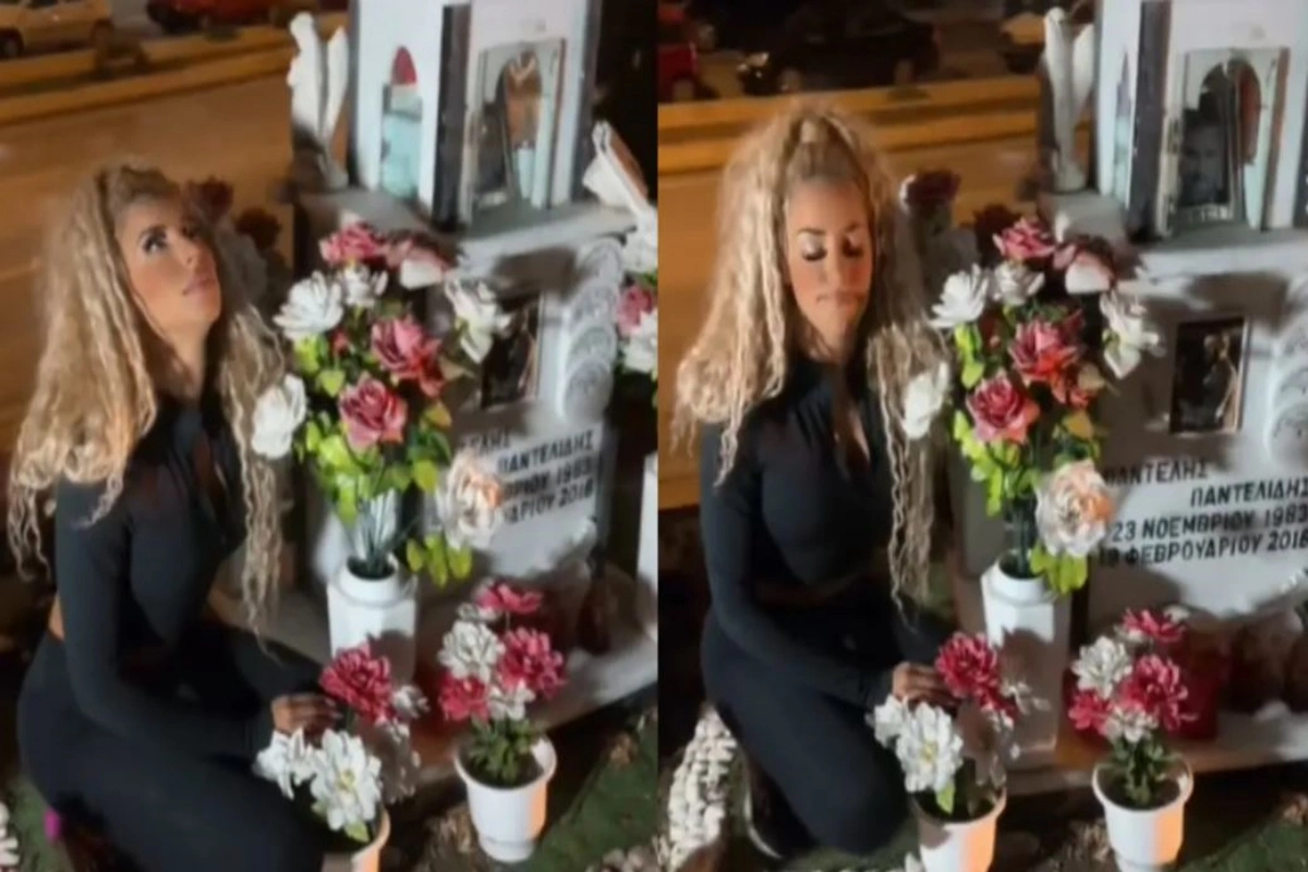 Η διάσημη χορεύτρια, πιο συγκεκριμένα, βρέθηκε στο μνήμα του Παντελή Παντελίδη, το οποίο είναι γεμάτο με λουλούδια από την οικογένειά του και τους θαυμαστές του που δεν τον έχουν ξεχάσει λεπτό και τον τιμούν με αυτή την κίνησή τους, και τοποθέτησε και η ίδια μία γλάστρα, έκανε τον σταυρό της και γονάτισε αγκαλιάζοντας τα άνθη και κοιτώντας την φωτογραφία του τραγουδιστή.