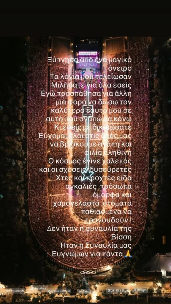Λίγες ώρες μετά την ολοκλήρωση των δύο μαγικών αυτών συναυλιών, η Άννα Βίσση εξέφρασε την ευγνωμοσύνη της στους θαυμαστές της με ένα story της, ενώ δεν έκρυψε τη συγκίνησή της.
