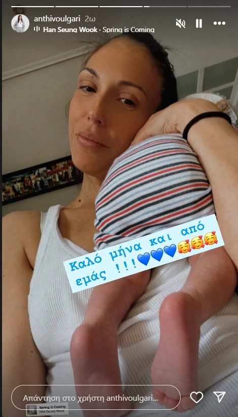 Στο τρυφερό στιγμιότυπο βλέπουμε τη νέα μανούλα να κρατάει στην αγκαλιά της τον μικρό της, ενώ στη λεζάντα έγραψε: «Καλό μήνα και από εμάς».