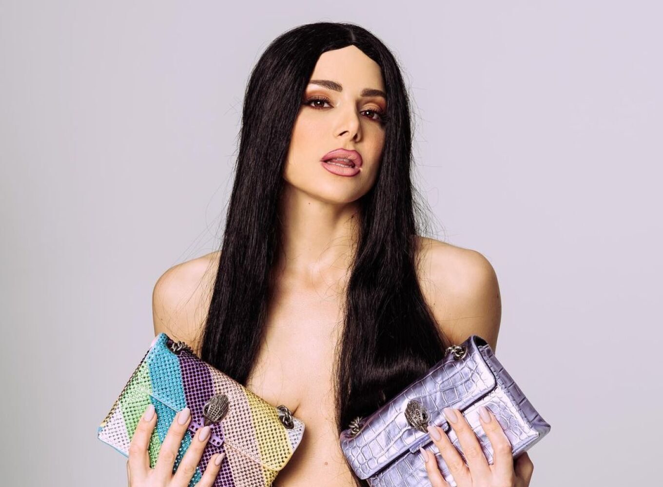 Συγκεκριμένα, εμφανίζεται φορώντας μονάχα ένα γαλάζιο εσώρουχο και καλσόν. Στα χέρια της κρατάει δύο τσάντες, τις οποίες σε μία από τις φωτογραφίες χρησιμοποιεί για να καλύψει το στήθος της.