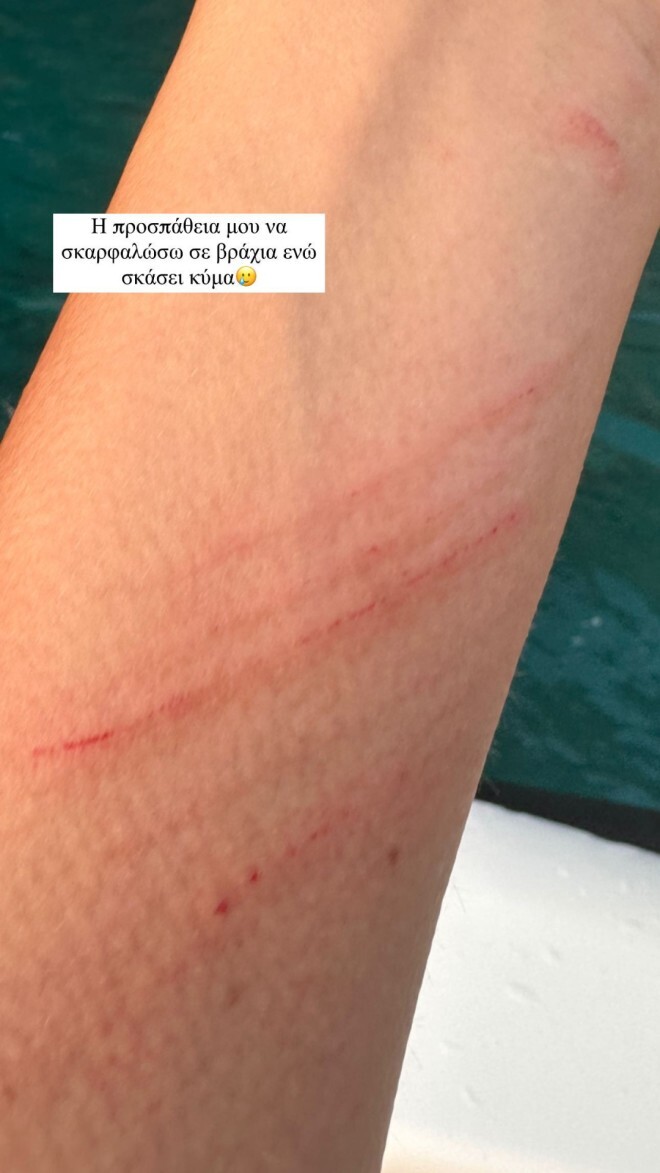 Η γλυκιά μαμά είχε έναν μικρό τραυματισμό. Απέκτησε κάποιες γρατζουνιές στην κοιλιά και το χέρι στη προσπάθειά της να ανέβει στα βράχια, αλλά παρασύρθηκε από τα κύματα.