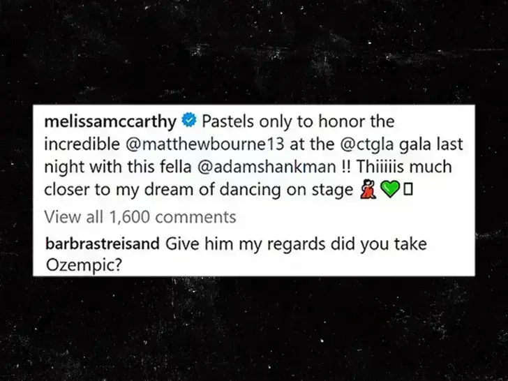 Η Στρέιζαντ έγραψε στην ενότητα σχολίων της ανάρτησης της Melissa: “Δώστε του (Σάνκμαν) τους χαιρετισμούς μου πήρες το Ozempic;” Φυσικά, όλοι γνωρίζουν ότι το Ozempic είναι ένα αμφιλεγόμενο φάρμακο για τον διαβήτη που μπορεί να χρησιμοποιηθεί για την απώλεια βάρους.