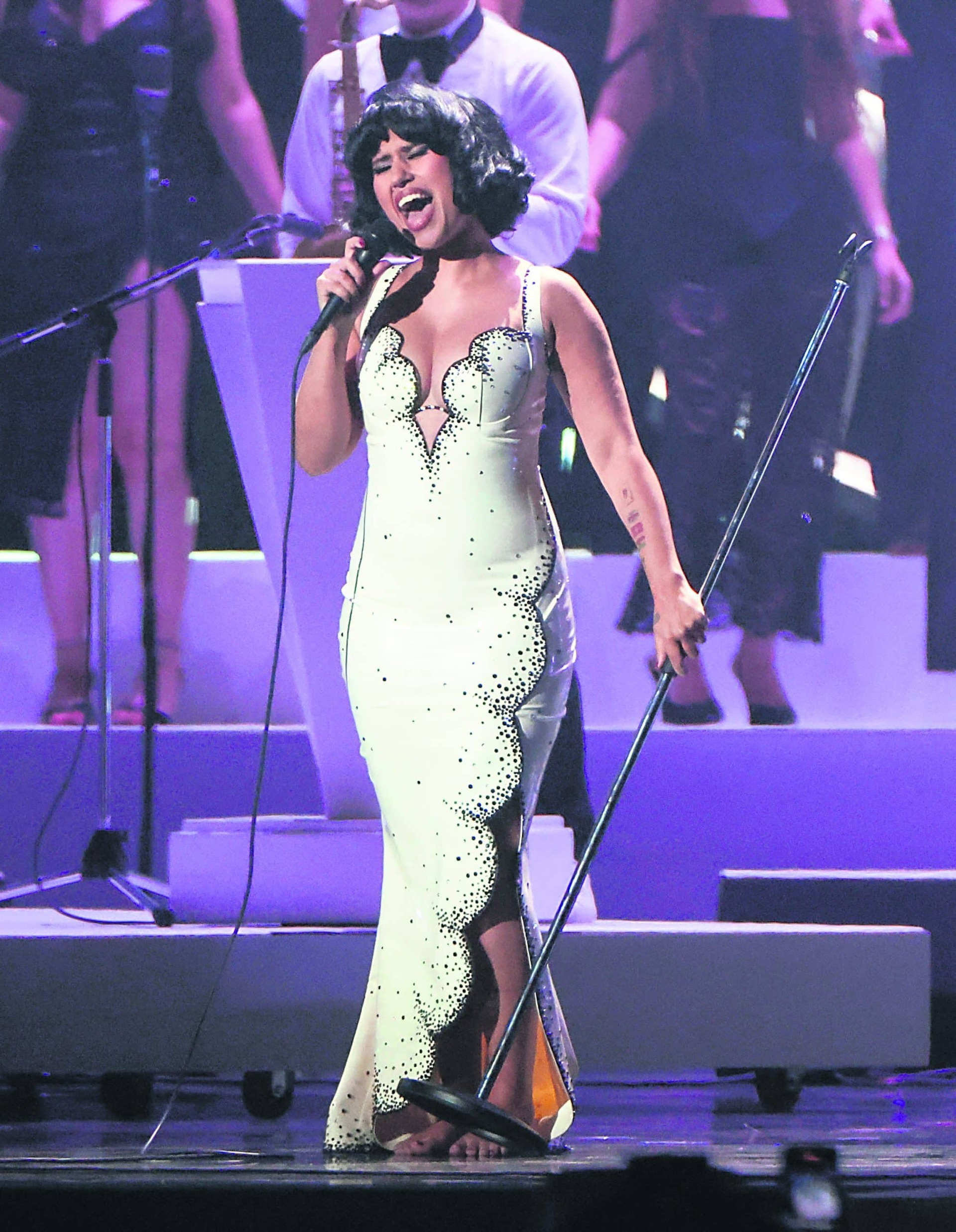 Η μεγάλη νικήτρια Raye επέλεξε, τέλος, δύο διαφορετικά ντυσίματα για τα Brit. Στο κόκκινο χαλί εμφανίστηκε με μία μαύρη τουαλέτα του Fendi, διακοσμημένη με στρας, ενώ στη σκηνή φόρεσε μία ασπρόμαυρη δημιουργία του Atsuko Kudo, φτιαγμένη από λάτεξ.