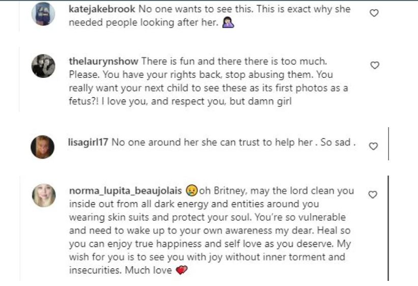 «Αυτό το κορίτσι είναι άρρωστο, φωνάζει για βοήθεια», έγραψε ένας χρήστης στο σχόλιό του, ενώ κάποιος άλλος έγραψε: «Είμαι σίγουρη ότι η κηδεμονία έγινε για κάποιο λόγο».