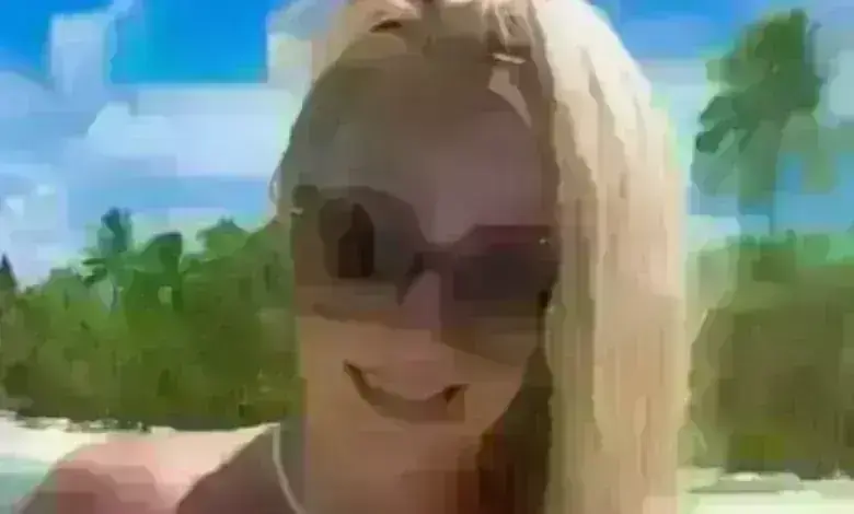Τα ξανθά μαλλιά της έπεφταν στους ώμους της καθώς φορούσε μόνο ένα ζευγάρι σκούρα γυαλιά ηλίου.