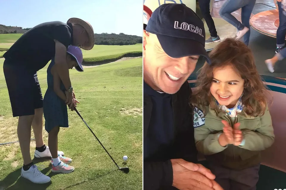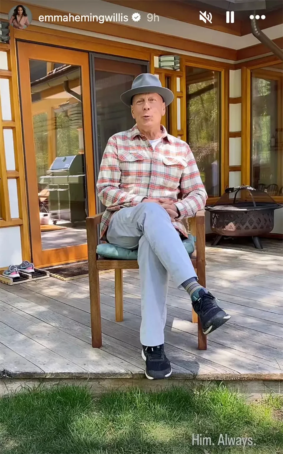 Μοιράστηκε επίσης φωτογραφίες του 69χρονου Μπρους να βοηθά ένα από τα παιδιά του να παίξει γκολφ και να χαμογελά σε μια βόλτα με φλιτζάνια τσαγιού, που φαινόταν να είναι throwback φωτογραφίες.