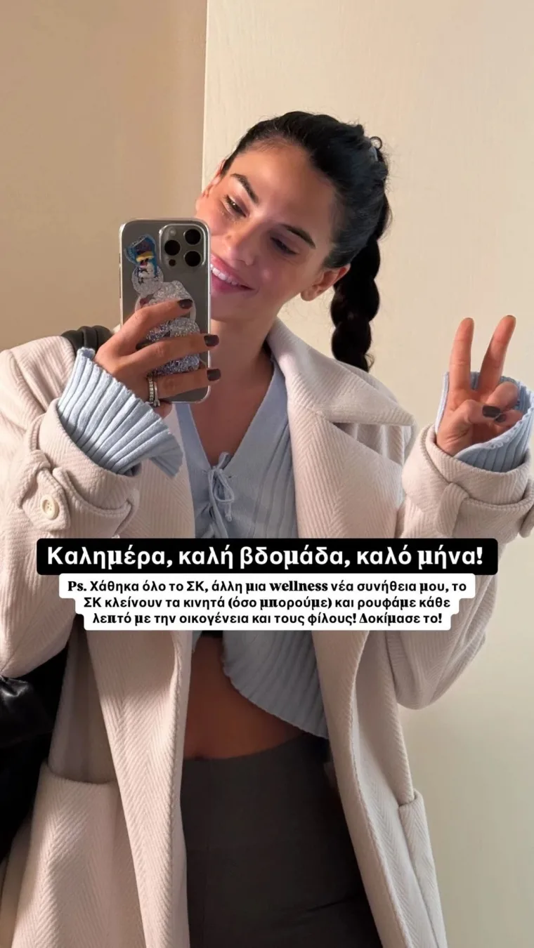 «καλημέρα, καλό μήνα και καλή βδομάδα! Χάθηκα όλο το ΣΚ, άλλη μία wellness νέα συνήθειά μου, το ΣΚ κλείνουν τα κινητά (όσο μπορούμε) και ρουφάμε κάθε λεπτό με την οικογένεια και τους φίλους. Δοκίμασέ το»!