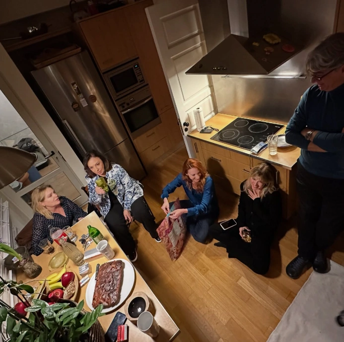 «Όταν μαζευόμαστε και η Κλέλια Ανδριολάτου επιμένει να κάτσουμε στην κουζίνα, αλλά δεν χωράμε!!!… Kitchen gatherings», έγραψε στο Instagram.