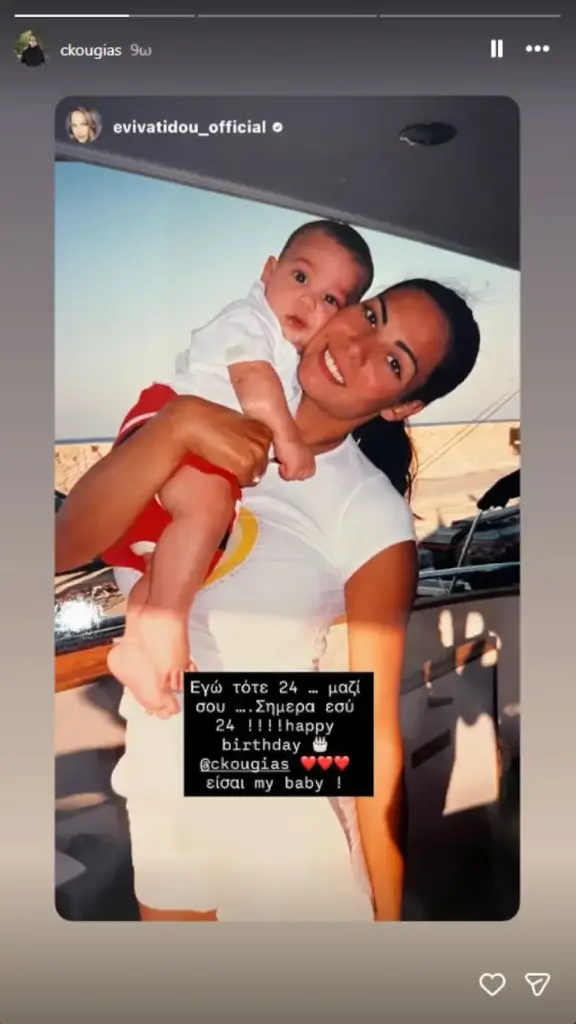 Ξεχωριστή ήταν και η δημόσια ευχή που έκανε η μητέρα του, Εύη Βατίδου, μέσα από το δικό της προφίλ στο Instagram. Η ίδια δημοσίευσε μια παλιά φωτογραφία από την περίοδο που ο Χρίστος ήταν ακόμη βρέφος, συνοδεύοντάς τη με το μήνυμα: «Εγώ τότε 24… μαζί σου… Σήμερα εσύ 24. Χρόνια πολλά. Είσαι το μωρό μου».