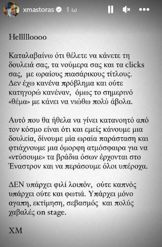 Ο γνωστός καλλιτέχνης ανέβασε στο Instagram το σχόλιό του για τα δημοσιεύματα, γράφοντας ότι ήταν μία παράσταση και ότι δεν υπήρξε κανένα φιλί με τη Δέσποινα Βανδή.