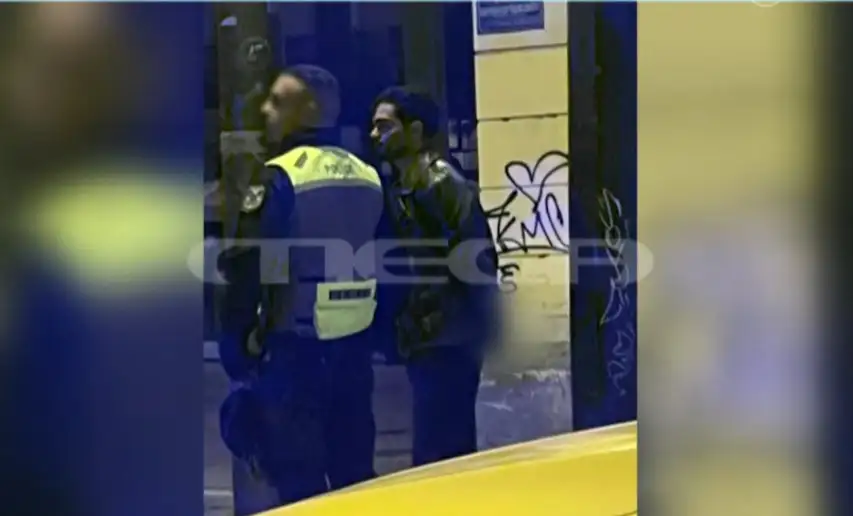 Στο στιγμιότυπο απεικονίζεται ο τραγουδιστής με χειροπέδες, ενώ έχει δίπλα του έναν αστυνομικό.