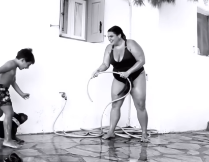 «Αποφασίσαμε με τον Ίωνα να κάνουμε μπάνιο με το λάστιχο έξω αντί για την ντουζιέρα. Όταν ήμουν μικρή, στις διακοπές ήταν σχεδόν «κανονικότητα» το μπάνιο στην αυλή ή στις ταβέρνες με λάστιχα αν ήμασταν σερί έξω, ή στον κήπο της γιαγιάς μου, ή ακόμα κι αν δεν είχαμε πάει θάλασσα πάλι το τολμούσαμε.