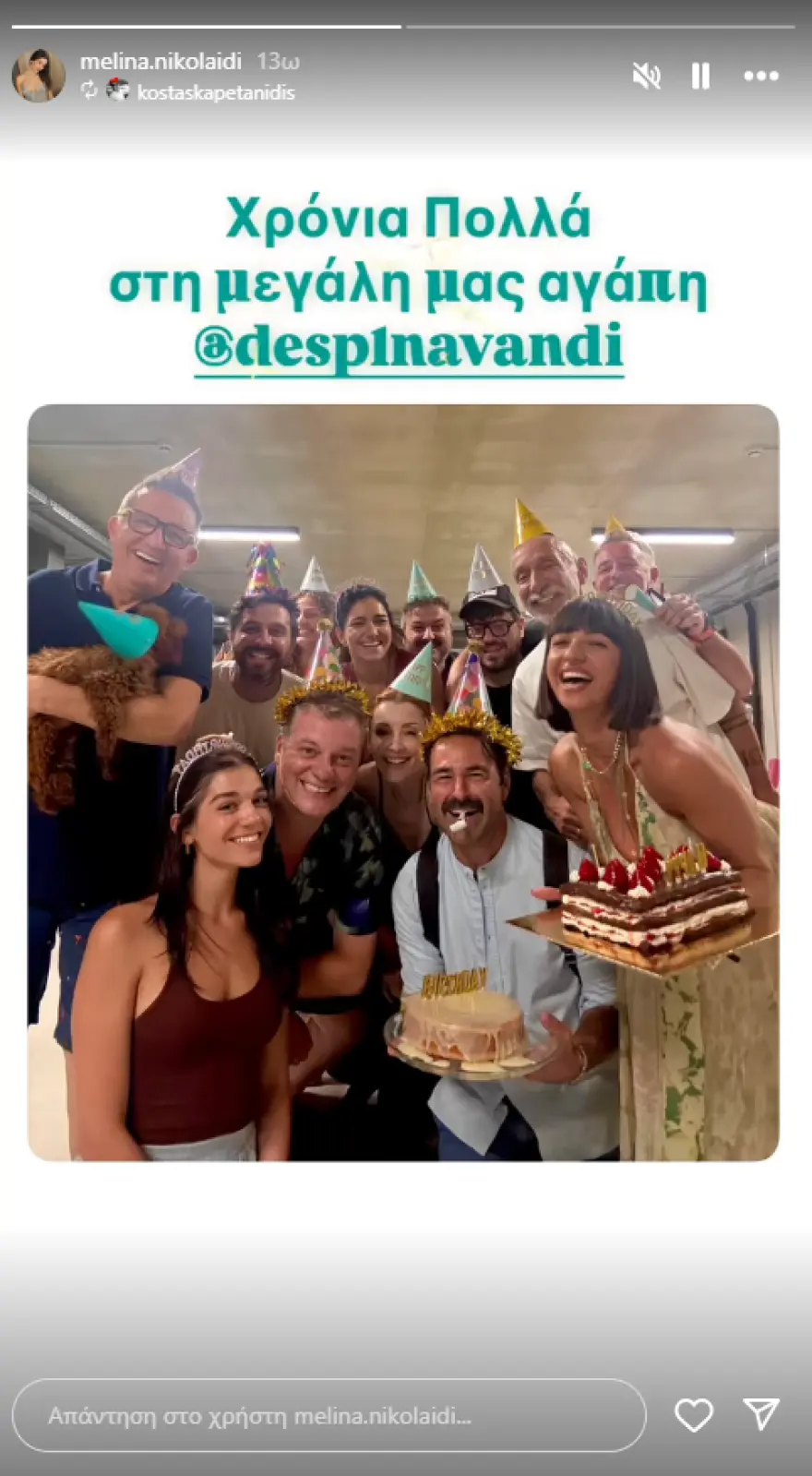 Τα παιδιά της, Μελίνα και Γιώργος Νικολαΐδης ήταν παρόντα, όπως και αγαπημένοι φίλοι της Δέσποινας Βανδή, μεταξύ εκείνων ο Κώστας Καπετανίδης.