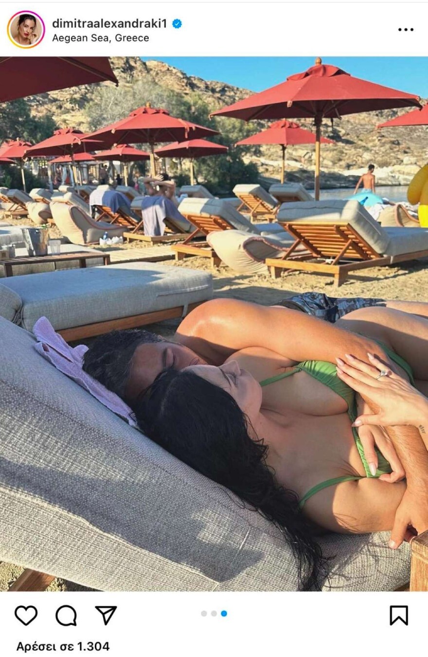 Από το στιγμιότυπο αντιλαμβανόμαστε, ότι το ζευγάρι είναι στα καλύτερά του! Αγκαλιασμένοι με τα μαγιό τους στην παραλία απολάμβαναν την θάλασσα, με τη Δήμητρα Αλεξανδράκη να μας δείχνει το μονόπετρο της .
