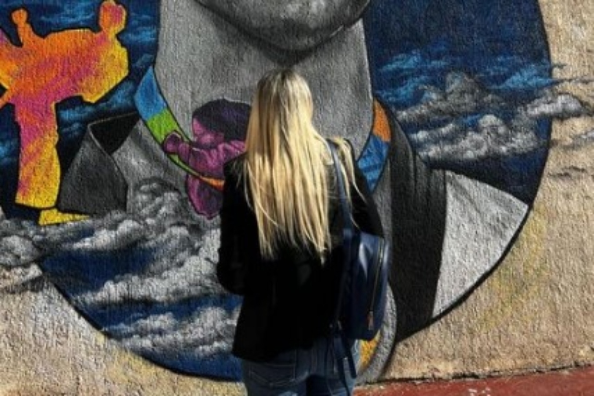 Η σύζυγος του Ολυμπιονίκη βρέθηκε στο κολυμβητήριο του Βύρωνα, όπου και είδε από κοντά το τεράστιο γκράφιτι στη μνήμη του Αλέξανδρου Νικολαΐδη.