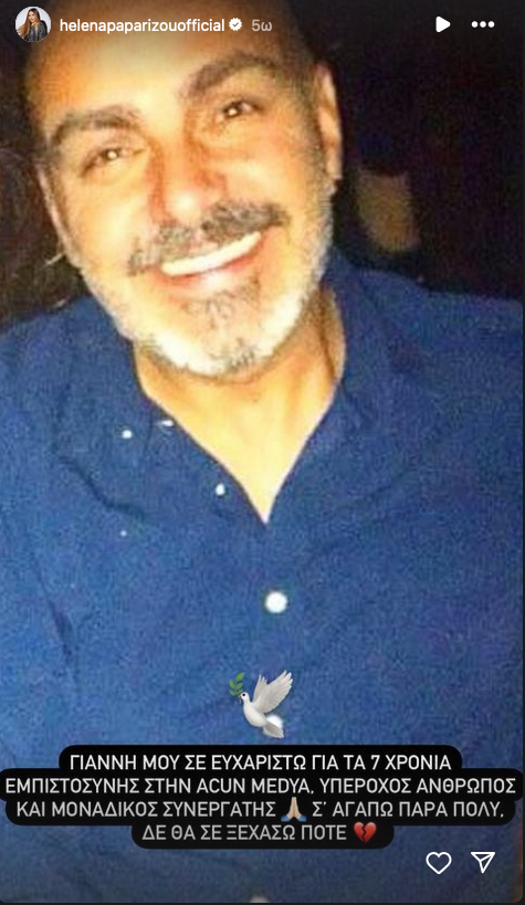 Η Έλενα Παπαρίζου συγκινημένη για τον Θάνατο του τον αποχαιρέτησε μέσα από το προφίλ της στο instagram