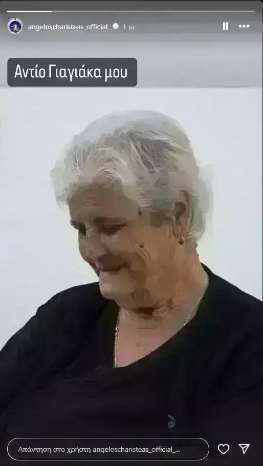 Δημοσιεύοντας μια φωτογραφία με την γιαγιά του ο Άγγελος Χαριστέας την αποχαιρετά γνωστοποιώντας την δυσάρεστη είδηση του θανάτου της.