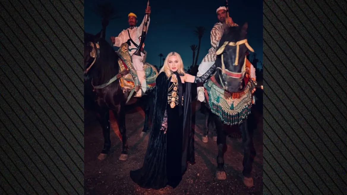 Η 67χρονη σταρ εμφανίζεται σε λήψεις που δείχνουν φωτιές κατασκήνωσης και σκηνές κατασκήνωσης σε ανοικτό χώρο, με τον νυχτερινό ουρανό και το περιβάλλον φωτισμένο κυρίως από τις φλόγες. Σε ορισμένα καρέ διακρίνονται άντρες με παραδοσιακές φορεσιές και καβαλάρηδες πάνω σε άλογα, στοιχεία που προβάλλουν το τοπικό περιβάλλον, ενώ άλλες εικόνες προτείνουν σκηνικό με σκηνές και εσωτερικούς χώρους κατασκήνωσης. Το υλικό περιλαμβάνει ποικιλία πλάνων, από κοντινά πρόσωπα έως ευρυγώνιες πανοραμικές λήψεις, οι οποίες αποτυπώνουν λεπτομέρειες ενδυμασιών και σκηνικών αντικειμένων.