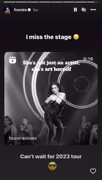 «Μου έλειψε η σκηνή. Δεν μπορώ να περιμένω για την περιοδεία του 2023», έγραψε στην ανάρτησή της η Ελένη Φουρέιρα.